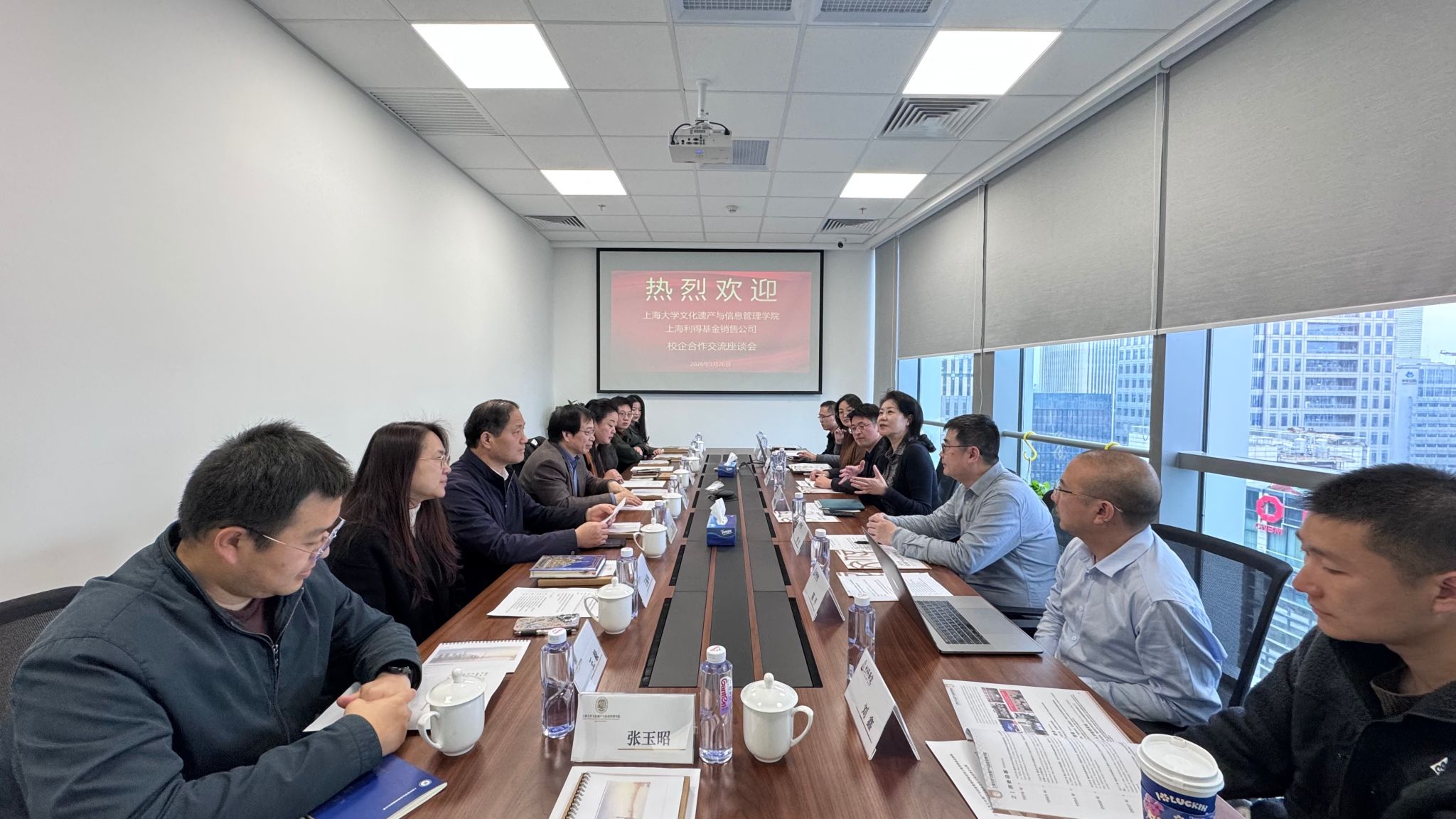 为深入贯彻学校全面深化高等教育综合改革精神,聚焦“为科服务、为产育人”,扎实推进学院“十五五”规划编制与落地,深化政产学研用协同创新,3月26日下午,365英国上市网院长马萧林,学科带头人金波,学院党委副书记、副院长韦淑珍,副院长王丽华,图书情报学系副主任王毅,青年教师联谊会会长陈晓宇,党委组织员崔明,人事干事吴洁琼,团委副书记、研究生辅导员张玉昭等一行赴上海利得基金销售有限公司开展校企合作交流座谈。上海利得基金销售有限公司总经理经晓云,首席信息官陈洲,产品与质控部总经理黄健杰,系统开发部总经理陈平,数据中心部门总经理兼运维保障部总经理管吉,投资研究部首席量化分析师于鹏,数据中心资深产品经理王雅萍,投资研究部高级基金研究员刘鑫等公司高管及业务骨干热情接待。