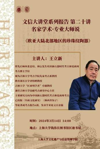 教育部长江学者特聘教授、吉林大学王立新教授带来文信大讲堂系列报告第二十讲《欧亚大陆北部地区的珍珠纹陶器》。珍珠纹是欧亚大陆北部地区新石器时代至早期铁器时代非常流行的一种陶器纹饰。最新发现表明,装饰这种纹样的最早标本见于中国南部的万年仙人洞遗址早期地层(约距今20,000-18,000年)。大约在距今15,000-13,000年前后出现于中国东北、俄罗斯远东及东西伯利亚地区。从目前所见的材料可以看出,这类纹饰应是起源于东亚地区,继而通过欧亚大陆北部森林草原地带渔猎采集人群的交流网络由东向西传播。此项研究从一个侧面佐证了Peter Jordan博士的观点,即早期陶器在东亚地区出现后,陶容器制作技术最先就是通过欧亚大陆北部地区的渔猎采集人群而由东而西传播的。