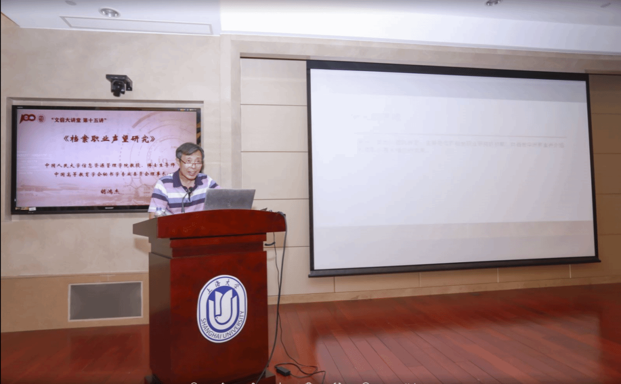 胡鸿杰教授以《档案职业声望研究》为主题,从统计学和社会学的视角切入对档案职业声望这一“冷门绝学”。胡鸿杰教授首先由其档案职业与学术评价中心主任引入对档案职业的研究,由职业的四个要点,即酬劳、连续、群体、规则引入档案职业的研究,并从《中华人民共和国职业分类大典》中档案工作者职业划分循循善诱,引出对档案职业主体、档案职业培训等真命题档案职业准入等伪命题的见解,以层层递进式的铺垫,相对严谨地点明主题《档案职业声望研究》。