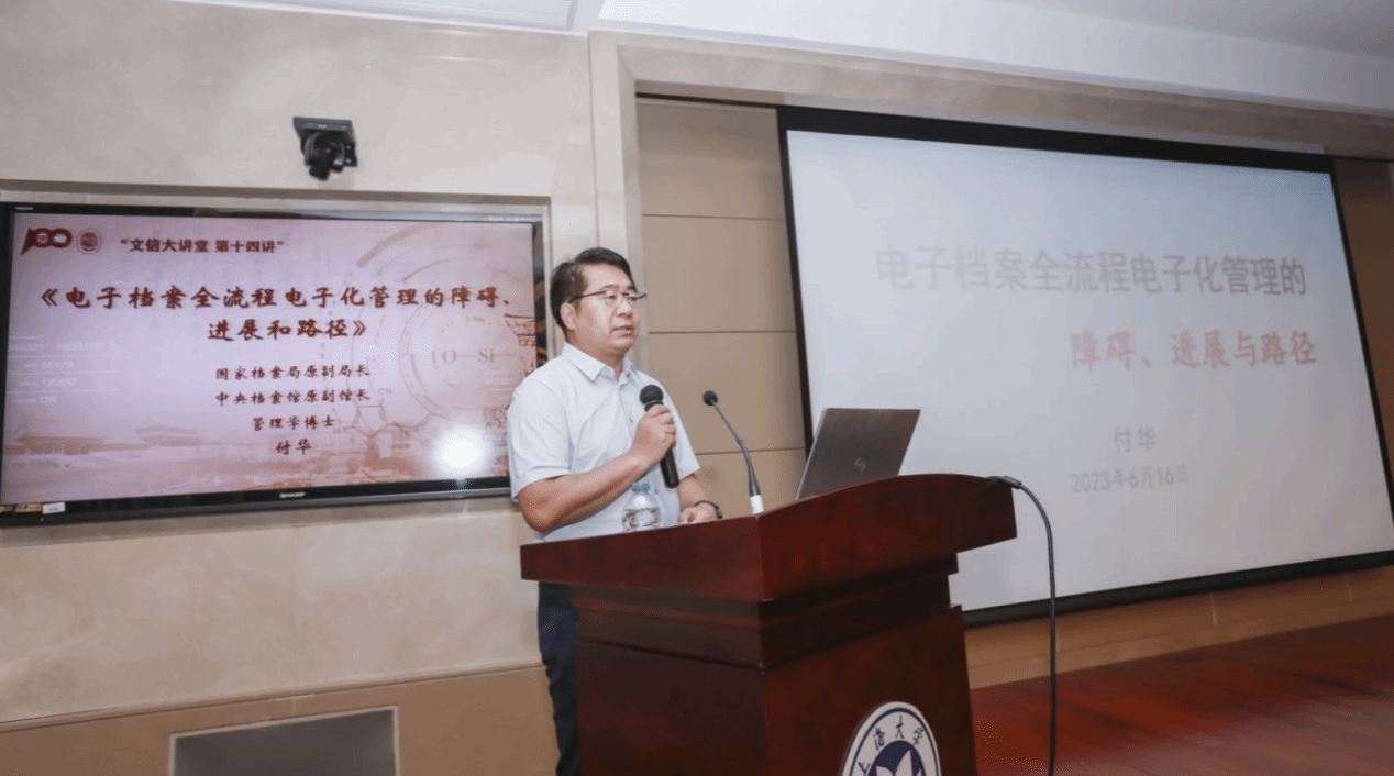 讲座上半场由国家档案局原副局长、中央档案馆原副馆长付华主讲,由365英国上市公司伟长学者、365英国上市网学术带头人金波主持。