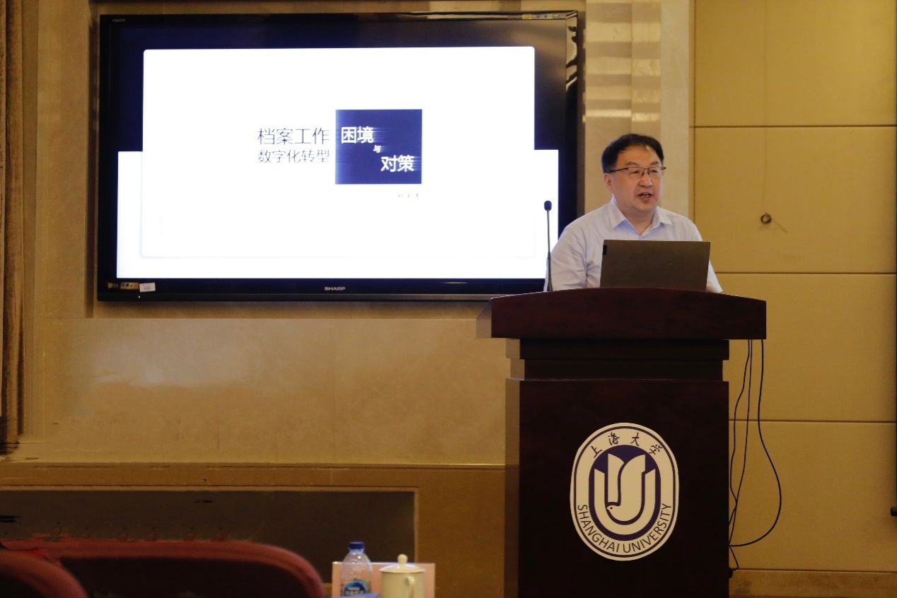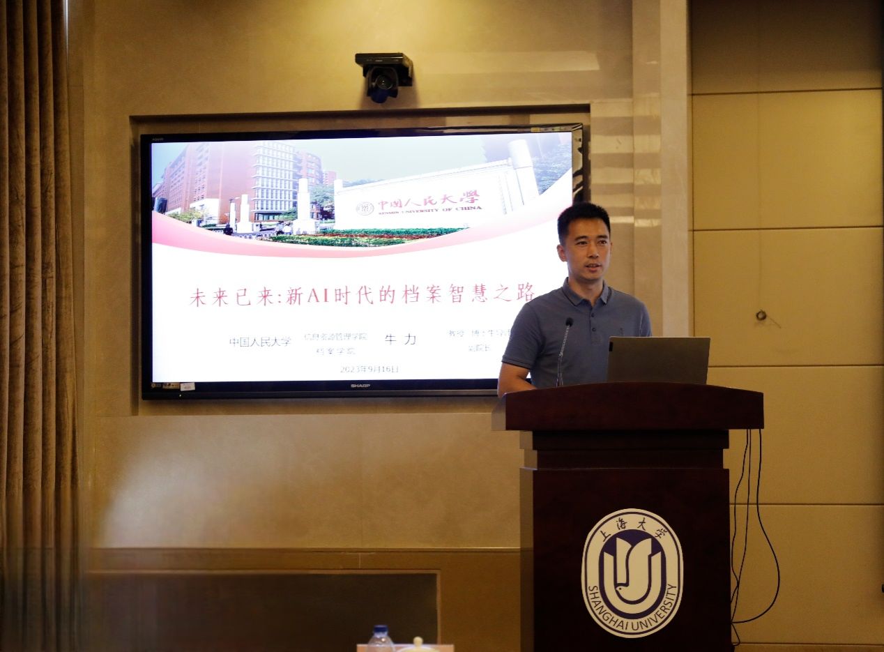 由黑龙江大学信息管理学院任越教授主持,中国人民大学信息资源管理学院牛力教授作题为“未来已来:新AI时代的档案智慧之路”的主旨报告。牛力教授描述了AI环境之下档案工作应该呈现的形态,同时预测了未来档案资源开发领域如何更好地利用AI技术来让档案资源呈现出更加多样化的色彩。从运用数据分析和数据发现技术展示吴宝康先生生平事迹的案例引入,从多个研究成果中分析、总结,提出了三个转型方向:第一,档案开发从表征向深度复杂计算转型;第二,档案利用从单一向高阶多维价值发现转型;第三,关键技术从分布离散应用向融合协同创新转型。