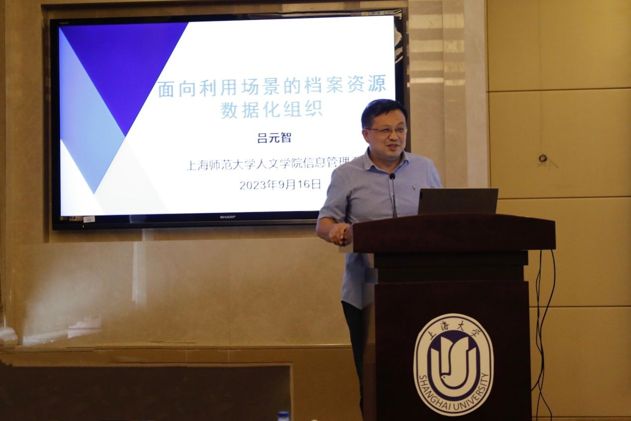 由西藏民族大学管理学院侯希文教授主持,上海师范大学人文学院吕元智教授作题为“面向利用场景的档案资源数据化组织”的主旨报告。吕元智教授从档案利用的实践经验出发,提出目前档案数据组织存在的问题并进行分析,设置了凭证、决策、研究、学习和休闲五大场景,形成了面向利用场景的档案资源数据化组织实现框架,包含档案资源层、数据提取层、关联链接层、资源聚合层和档案利用层,最后回答档案如何赋能中国式现代化建设的时代问题,即让档案发挥现实效用和让档案真正能用、好用。
