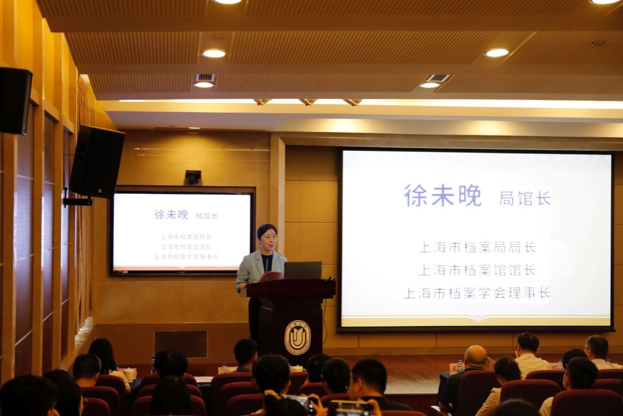 上海市档案局局长、上海市档案馆馆长徐未晚致辞。在实践工作中,要认真践行总书记对档案工作的“三个走向”“四个好”“两个服务”等一系列重要批示指示精神,在履行市委工作机关政治要求的基础上,着力做好完善档案工作体制机制建设,加强档案的法治建设,强化红色档案、四重档案的归集工作,优化档案服务民生行动,开发、利用、挖掘好档案资源,全行业推进数字化转型这六个方面的工作。同时,走进新的时代,面对新的挑战,尤其是快速迭代的档案工作事业,我们迫切地需要与之相适应的学科理论的指导,也愿意发挥上海高校云集、人才荟萃、要素资源丰富、改革发展空间广阔的有利优势,推动上海成为档案领域现代化发展的思想汇集地、理论策源地、工作实验田。希望以这次学术研讨会为契机,使上海的档案同事们能够团结紧密、合作共赢,坚持守正创新,加强互鉴交流,深化创新实践,为构建具有中国特色、中国风格、中国气派的档案学做出上海贡献。