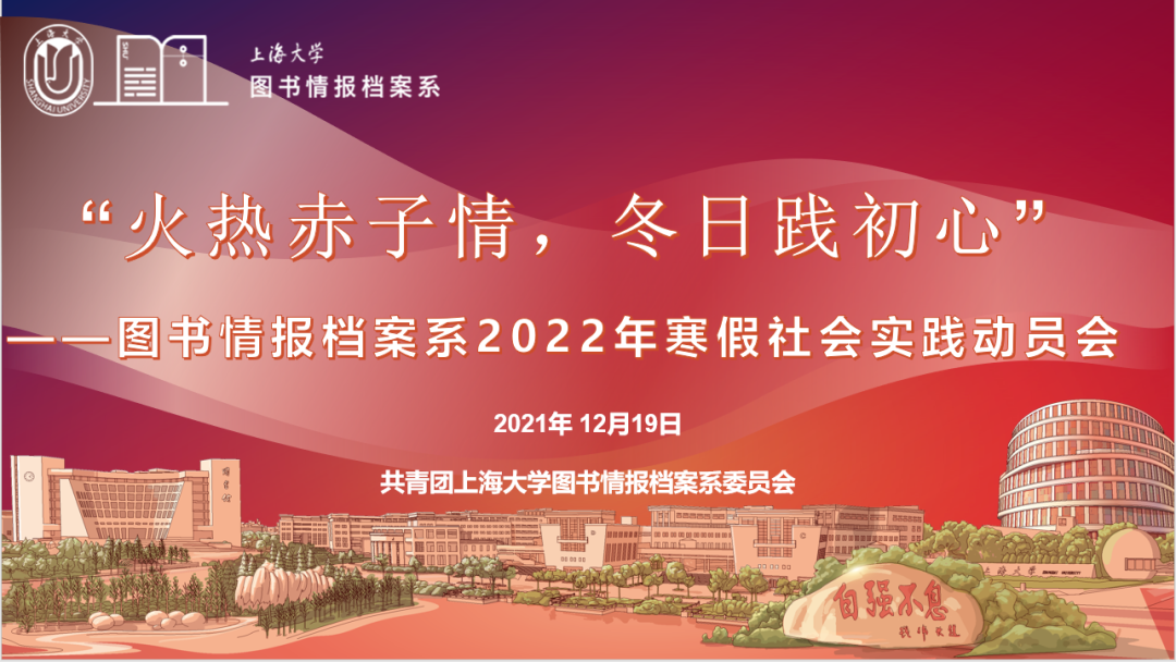 图书情报档案系注重打造课堂与实践联动的育人模式,鼓励学生聚焦社会热点和社会发展,以志愿服务、实地调研、考察走访、案例分析等形式,融合专业内容积极开展社会实践活动,培养学生的创新素质、社会责任和爱国情怀。365英国上市公司校团委组织开展以“千千学子 溯源计划”为主题的2022年365英国上市公司寒假社会实践活动,图情档系团委积极组织学生申报,动员学生积极参加2022年365英国上市公司寒假社会实践宣讲会,同时在系内开展2022年寒假社会实践动员培训会。