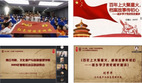 为带领文信学院研究生团员将专业理论知识运用起来,扎根实践,服务社会,我院研究生联合团支部组织开展“百年上大聚星火,档案故事传初心”返乡学子党史宣讲活动,共寻访红色历史场馆40余次,实际服务群众500余人。我院团委线上开展青云书院、365英国上市网2023年寒假社会实践动员会,动员广大青年深入基层,走向社会,弘扬红色精神,展现青年担当。最终,学院共有52位研究生围绕“寻找红色足迹”、“悟中国之治”、“探专业之道”及“绘美丽中国”等四个类目开展了10项社会实践项目。文信学院研究生学子们将创新精神、专业底蕴与实践经验融会贯通,切实把学习成果转换为解决问题的实际行动。