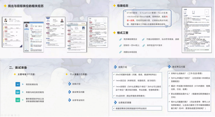 2020级档案学硕士研究生王洁菲,现就职于上海精密计量测试研究所,她根据自己的求职经历分享就业经验,指出制作简历时要明确就业目标,重点关注职位描述和所需技能,找出与目标岗位相关的经历。接着,王洁菲按照简历模板上的各要素详细分享了教育经历、实习经历、科研项目、学生工作和社会实践等内容的写作思路,还提到了润色简历的STAR原则以及简历格式上的注意事项。在面试准备方面,王洁菲认为面试时主要考察简历的真实性、与岗位的匹配性、面试者整体素质以及求职意愿的强烈程度等,面试前需要从自我介绍、面试常见问题和业务专业知识等方面做好准备。此外,王洁菲提醒大家可以在日常学习和生活中有意识的积累相关经历,积极参与学院品牌活动,熟悉本专业业务领域的标准规范,培养高效写作能力以及熟练操作办公软件的能力。在分享尾声,王洁菲为同学们加油鼓劲,希望大家都能勇敢迈出第一步,找到自己真正热爱的领域,专注自己脚下的路,不因挫折而气馁,不因纷乱而迷失,不因困境而消沉。