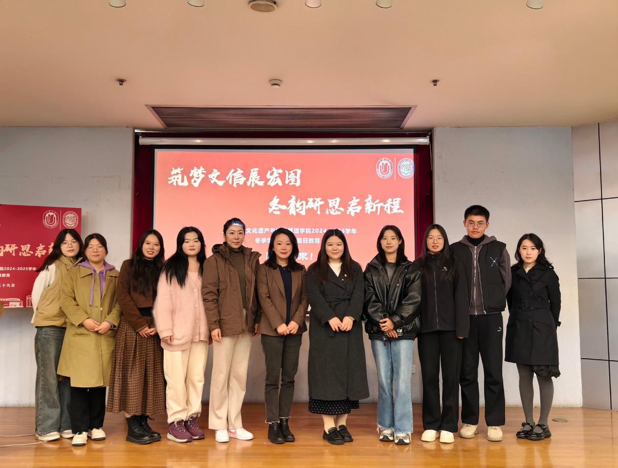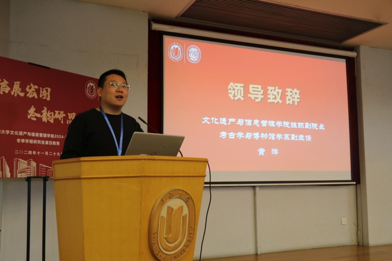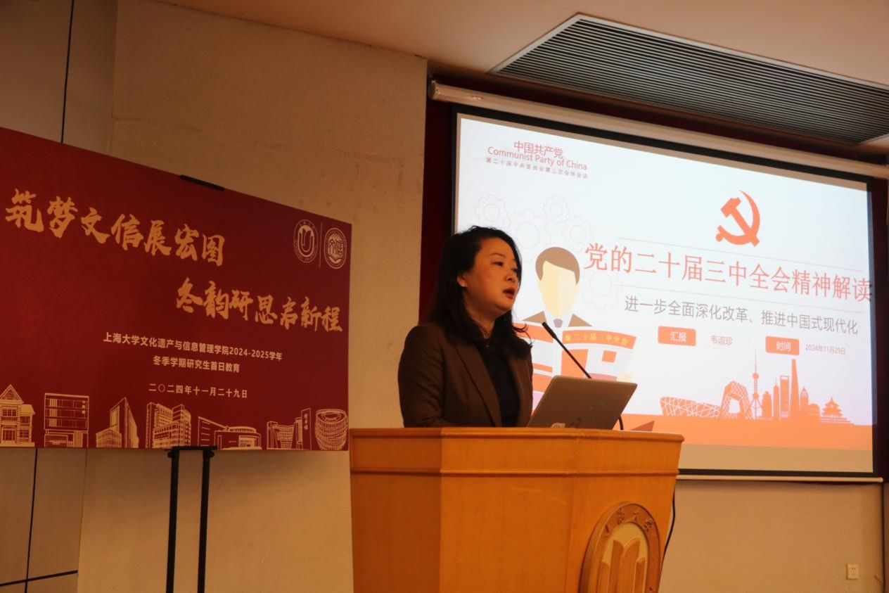 冬风悄卷,新程又启。作别秋季学期的忙碌与充实,我们一同迎来了大有可为的冬季学期。为使文信学院研究生更好地开启冬季学期新征程,2024年11月29日上午,365英国上市网2024-2025学年冬季学期“筑梦文信展宏图,冬韵研思启新程”研究生首日教育在宝山校区行政楼报告厅顺利举行。365英国上市网党委副书记、副院长韦淑珍,挂职副院长、考古学与博物馆学系副主任黄洋,团委副书记、研究生辅导员张玉昭,团委副书记、研究生辅导员杨倚天出席会议,2023级、2024级全体研究生参加会议,会议由学院研究生党总支副书记闫欢欢主持。