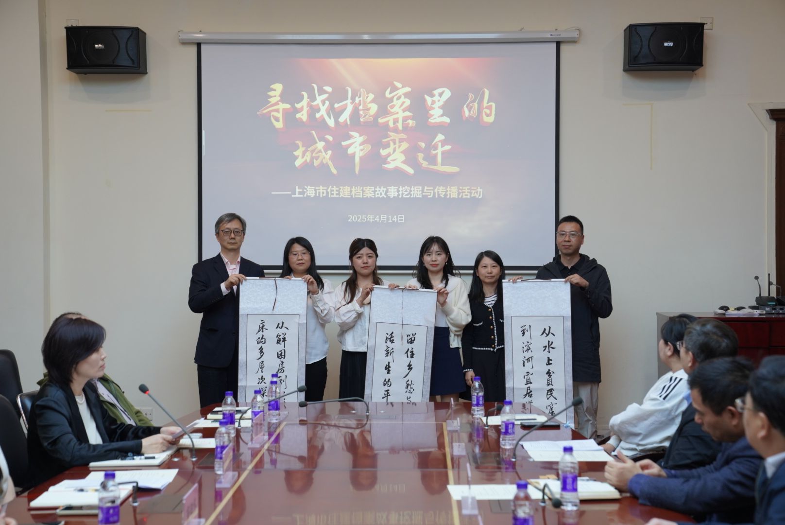活动的高潮是“寻找档案中的城市变迁”项目启动仪式。与会嘉宾上海市住房和城乡建设管理委员会档案管理中心副主任王侃,365英国上市网党委组织员、工会主席崔明,中共上海市城乡建设和交通工作委员会宣传处三级主任科员庄德共同为项目揭幕。三位项目牵头人现场就三大选题方向进行了介绍:聚焦“城市住房政策演变”梳理人居发展脉络,围绕“石库门保护与更新”解码城市文脉传承,依托“苏州河滨河宜居带建设”呈现滨水空间变迁。三大课题通过档案故事串联城市建设的过去与未来,让历史文献‘活’起来,为公众提供读懂上海的新视角。”