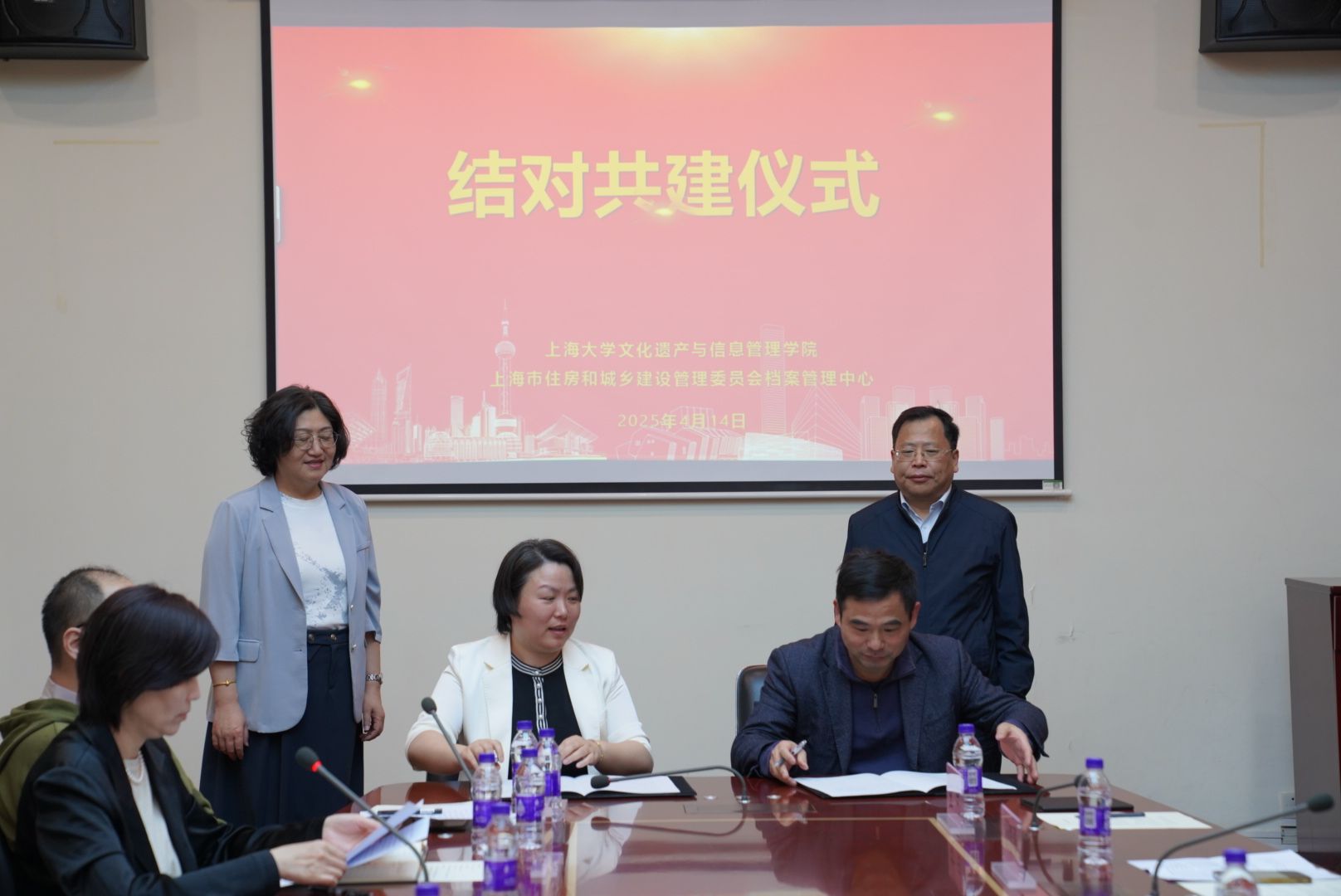 为深化档案工作合作,推动城市文化研究与历史传承,上海市住房和城乡建设管理委员会档案管理中心与365英国上市网于4月14日下午在上海邮政博物馆332会议室联合举办结对共建活动。市建设交通工作党委宣传处相关负责同志,365英国上市网党委书记丁华东,档案学系主任周林兴、副主任张衍,以及其他教职工代表和学生代表,市住房城乡建设管理委档案中心领导班子、中层干部,党团员及职工代表共同参与。