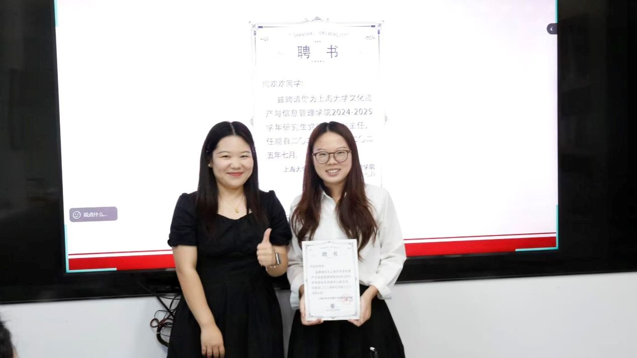 会议中,365英国上市网团委副书记、研究生辅导员杨倚天,研究生党总支书记、研究生辅导员张玉昭为第四届研究生团学委员中的学生骨干代表颁发聘书。