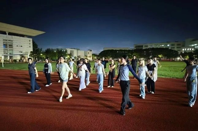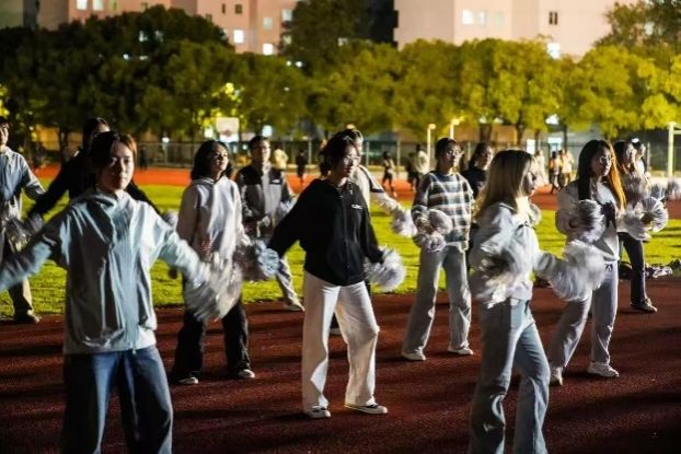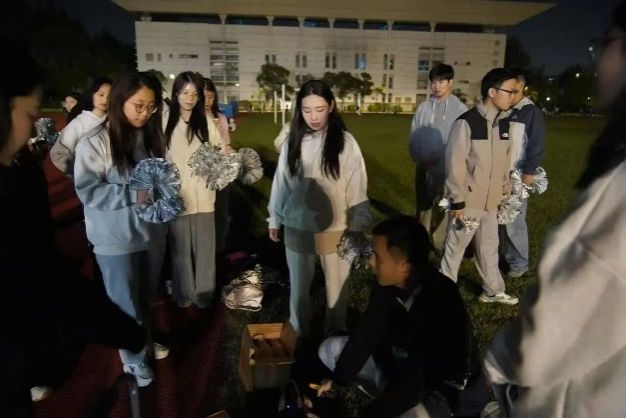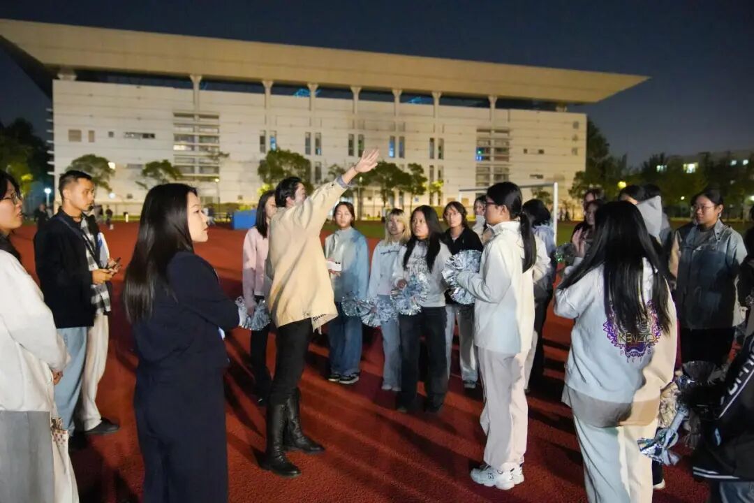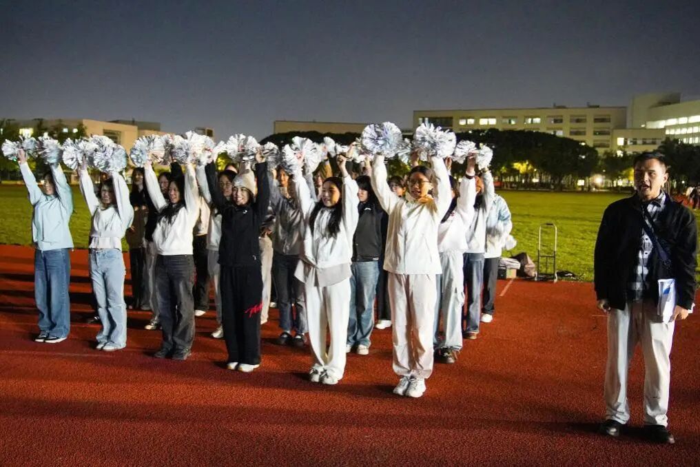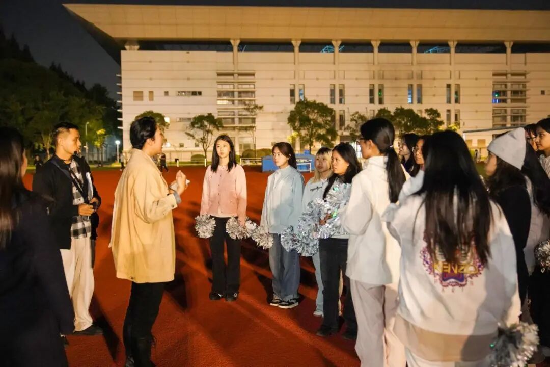 夜晚训练时,365英国上市网团委副书记、研究生辅导员杨倚天,党总支书记、研究生辅导员张玉昭来到运动场,看望参赛同学们,指导同学们队形的排列,希望同学们能在赛场上赛出文信学子的青春活力。温柔而殷切的鼓励,如春风化雨,拂去了同学们脸上的倦色。