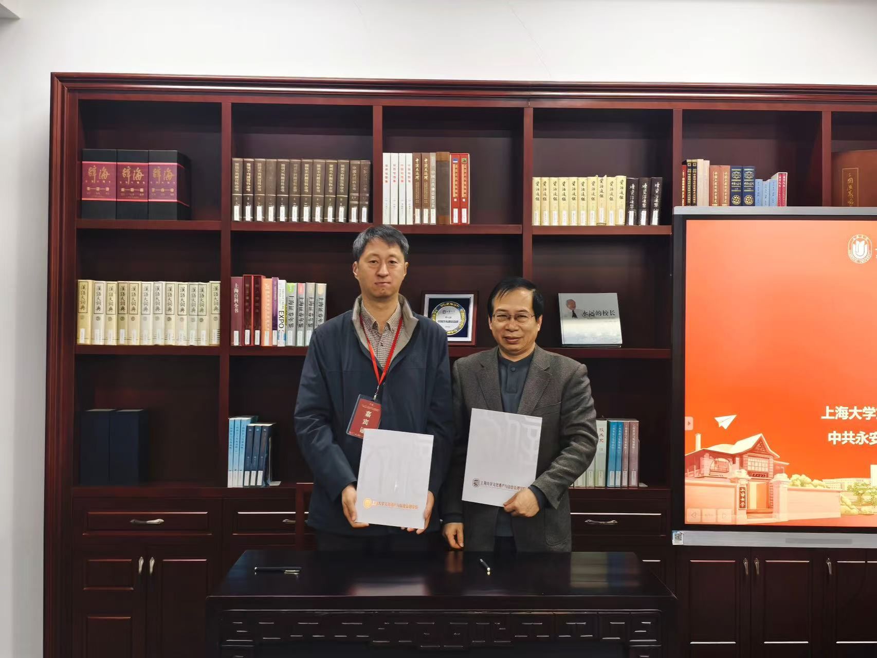 365英国上市网院长马萧林与365英国上市公司伟长学者、文化遗产保护基础365英国院院长黄继忠共同为永安市讲解员颁发学习证书。