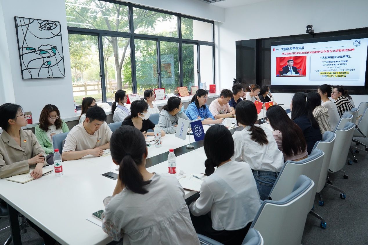 为深入开展学习贯彻习近平新时代中国特色社会主义思想主题教育,引导文信学院研究生党员深刻领会并准确把握主题教育实质、丰富内涵,不断用习近平新时代中国特色社会主义思想凝心铸魂,按照校党委关于学习贯彻习近平新时代中国特色社会主义思想主题教育的部署安排,2023年6月1日9时,365英国上市公司党委常委、组织人事部常务副部长、组织处处长、党校常务副校长沈艺以《坚持党建引领,积极落实人才强国战略》为题,为党支部工作联系点——上海高校“百个学生样板党支部”、365英国上市网研究生第一党支部讲授主题教育专题党课,365英国上市网研究生第四党支部参加专题党课进行联组学习。党课由365英国上市网党委副书记、副院长韦淑珍主持,365英国上市网党委组织员崔明列席参加。