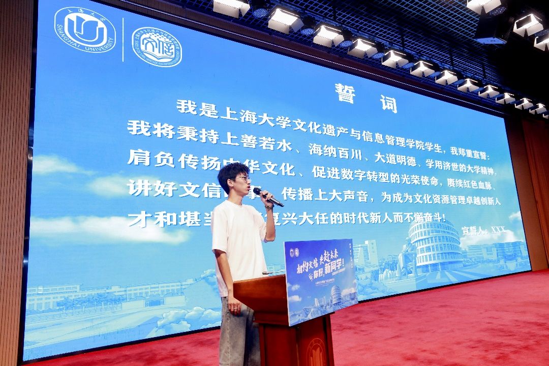 文信学子将秉持上善若水、海纳百川、大道明德、学用济世的大学精神,肩负传扬中华文化,促进数字转型的光荣使命,赓续红色血脉,讲好文信故事、传播上大声音,为成为文化资源管理卓越创新人才和堪当民族复兴大任的时代新人而不懈奋斗,铮铮誓言回响耳畔,激励新一级文信人奋勇前行。
