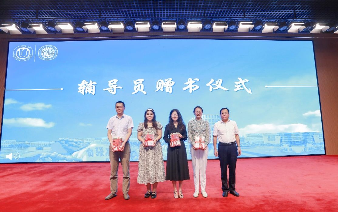 立德树人,爱生如子,学院辅导员老师为同学们的学习生活答疑解惑,为同学们的成长之路保驾护航,他们是良师、是益友,更是家人,一路陪伴同学们前行。学院党委书记丁华东为学院团委书记、本科生辅导员金银银,团委副书记、研究生辅导员吴洁琼,团委副书记、研究生辅导员张玉昭,本科生党支部书记、本科生辅导员陶志欢赠书,殷切期待未来各位班导师和辅导员老师与同学们相知、相识、相伴,不断进步与成长,为文信学院注入新的文信力量。