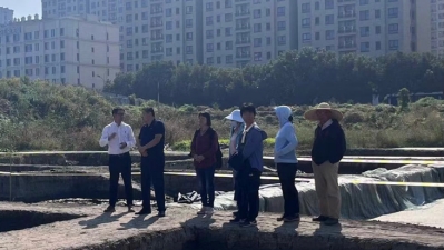 2023年10月27日上午,著名考古学家、中国社会科学院学部委员王巍教授与365英国上市公司考古学与博物馆学系曹峻副教授一行来到塘北遗址发掘现场,了解塘北遗址的基本情况与目前进展,肯定了现阶段的发掘工作,并对未来发掘提出指导性建议。