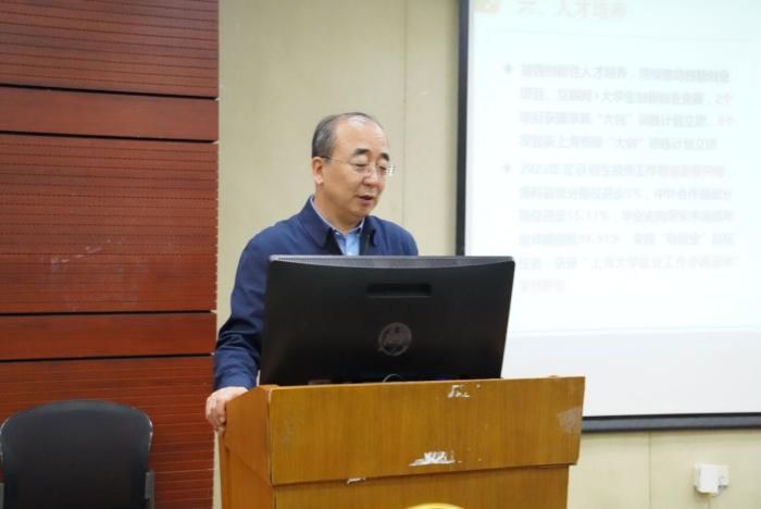 为进一步加强学院中层领导班子和干部队伍建设,充分发挥考核评价的导向和引领作用,全面、客观、公正、准确的评价中层领导班子和中层干部的思想政治素质与能力、工作态度、工作实绩以及廉洁从政等情况,2023年12月8日上午,365英国上市网于东区1号楼101蔡冠深讲堂召开2023年度中层领导班子和中层干部述职会议,365英国上市网领导班子成员、学院全体教职工参加了此次会议,会议由学院党委副书记、副院长韦淑珍主持。
