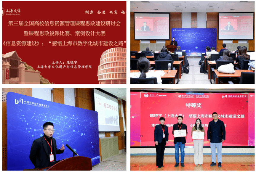 会议期间,学院图书情报学系青年教师陈晓宇参加案例设计大赛,以《感悟上海市数字化城市之路》为题,汇报了如何在《信息资源建设》课程中讲授“政府信息资源开发与建设”章节并开展思政案例教学。最后,经过在场5位专家评委打分和现场观众投票,陈晓宇老师设计的课程思政案例获得本次大赛特等奖的殊荣。