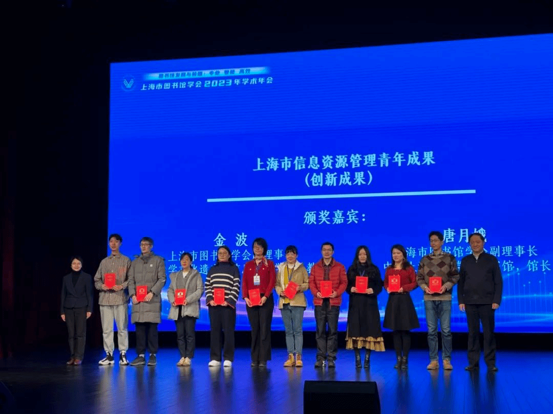 2023年12月20日,上海市图书馆学会2023年学术年会在上海图书馆东馆召开,本届学术年会围绕“图书馆发展与前瞻:专业 智能 高效”主题作精彩的主旨报告和圆桌讨论。同期还举行13个专题学术分会场,开展内容丰富的学术报告和交流研讨。开幕仪式上对2023年“上海市信息资源管理青年成果”进行了表彰颁奖,学院青年学者斩获颇丰,张云中教授“新时期的公共数字资源知识组织”系列论文、陈晓宇老师专著《知识网红的吸引力:他们如何驱动用户为知识付费》获评“上海市信息资源管理青年优秀成果”,张歌老师“图书馆学芝加哥学派研究”系列论文获评“上海市信息资源管理青年创新成果”。