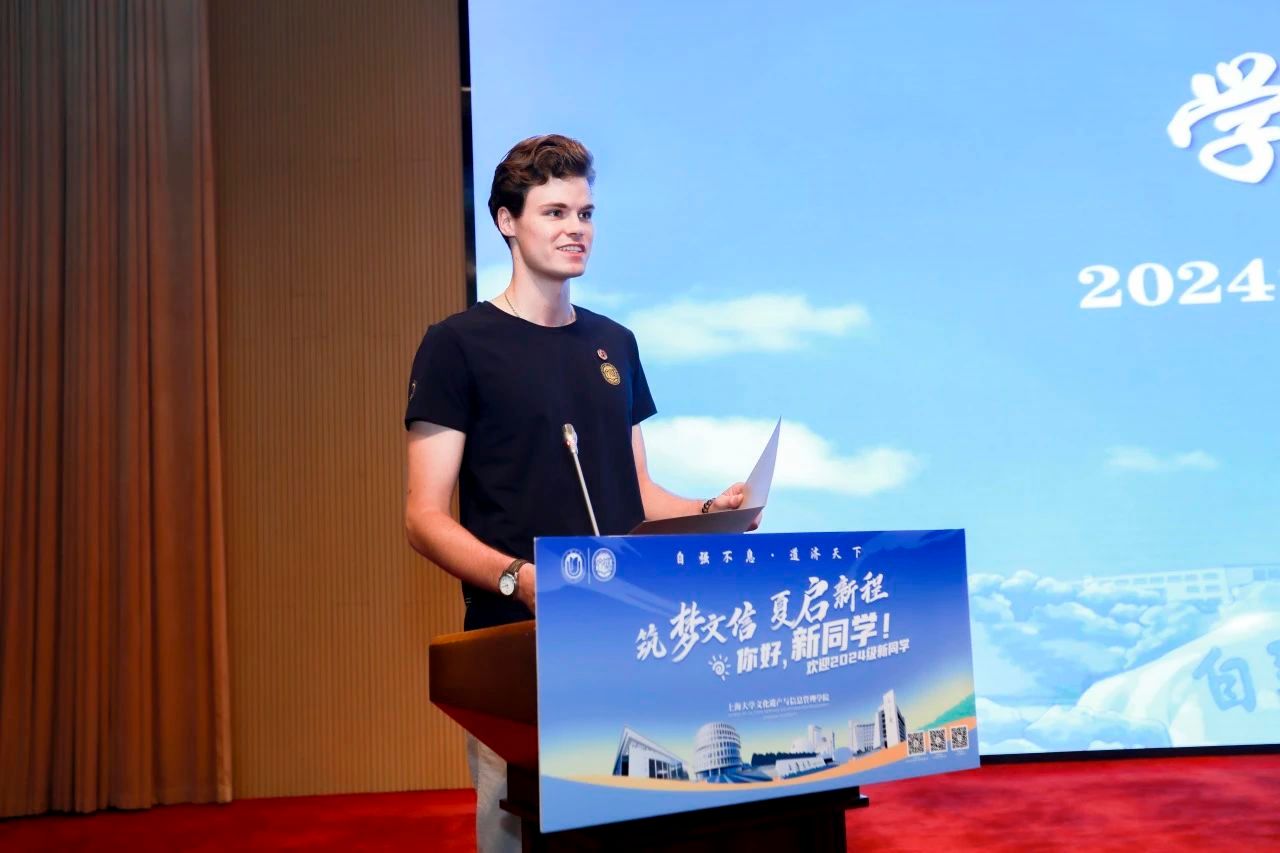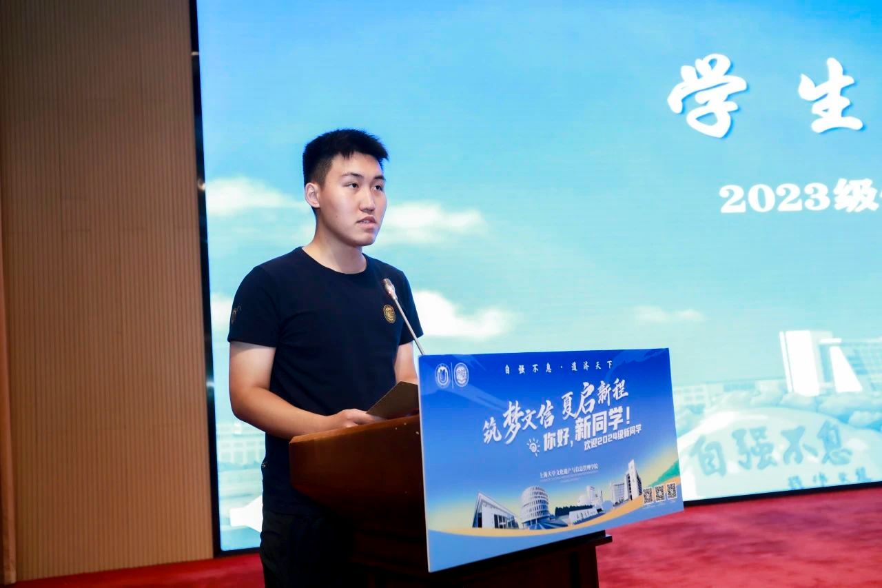 2023级本科生王仕达表达了对学院的敬意,并展望了即将开始的大学生活。他表示,信息资源管理专业的学生不仅要有扎实的理论基础,还要具备敏锐的洞察力和创新的思维,学会如何在数字化时代中保护和传播人类宝贵的文化遗产。文信学子肩负着守护和传承文化的重要社会责任,他呼吁同学们用专业的知识和技能为文化遗产的保护、传承与发展做出贡献。