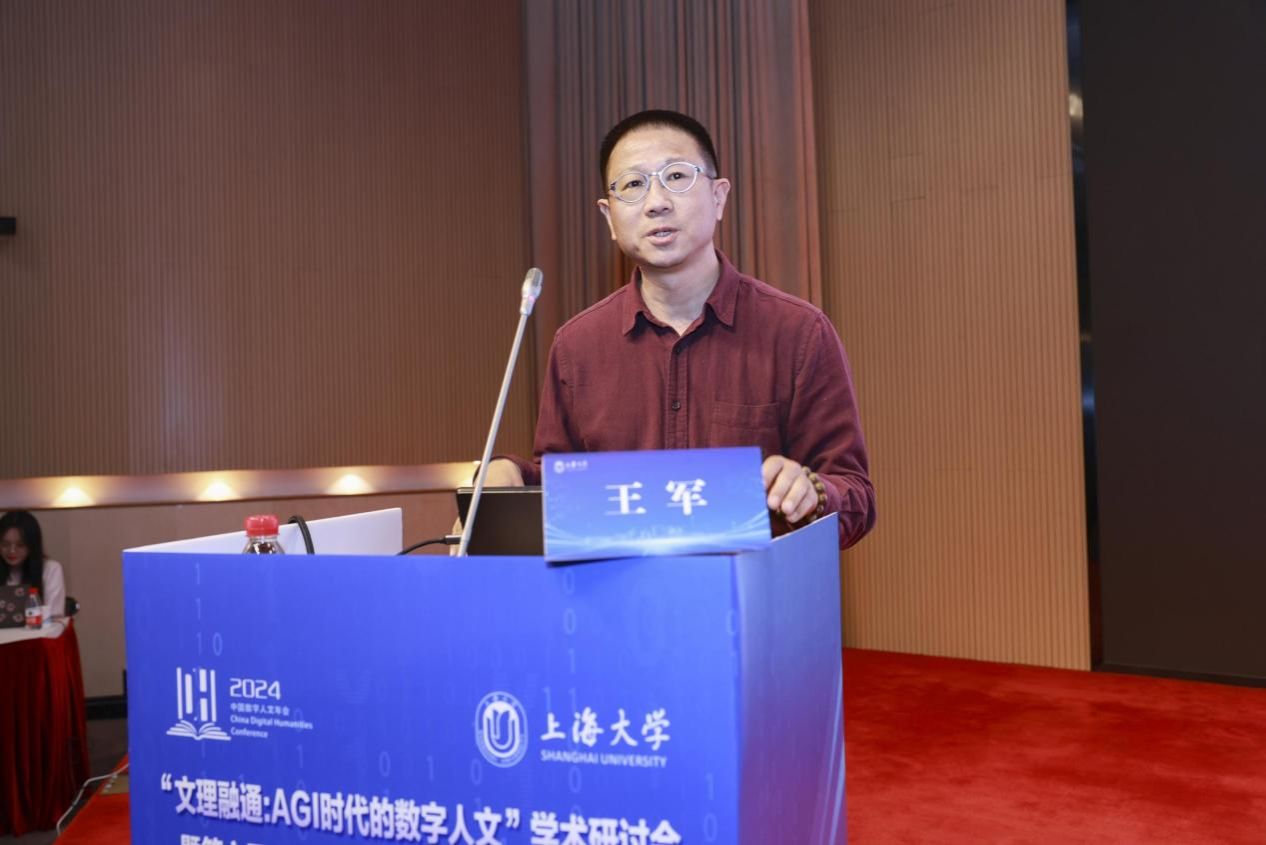 王军作主旨报告《人文语料数字化、知识化和智能化》,分享北京大学数字人文中心在数字人文领域的最新进展和支持措施。他通过智慧古籍平台、智能标记平台、语义增强案例等,解析了人文语料的数字化、知识化和智能化,展示了如何利用技术工具提升古籍整理效率和研究深度,为人文学科研究提供强大的技术支持。