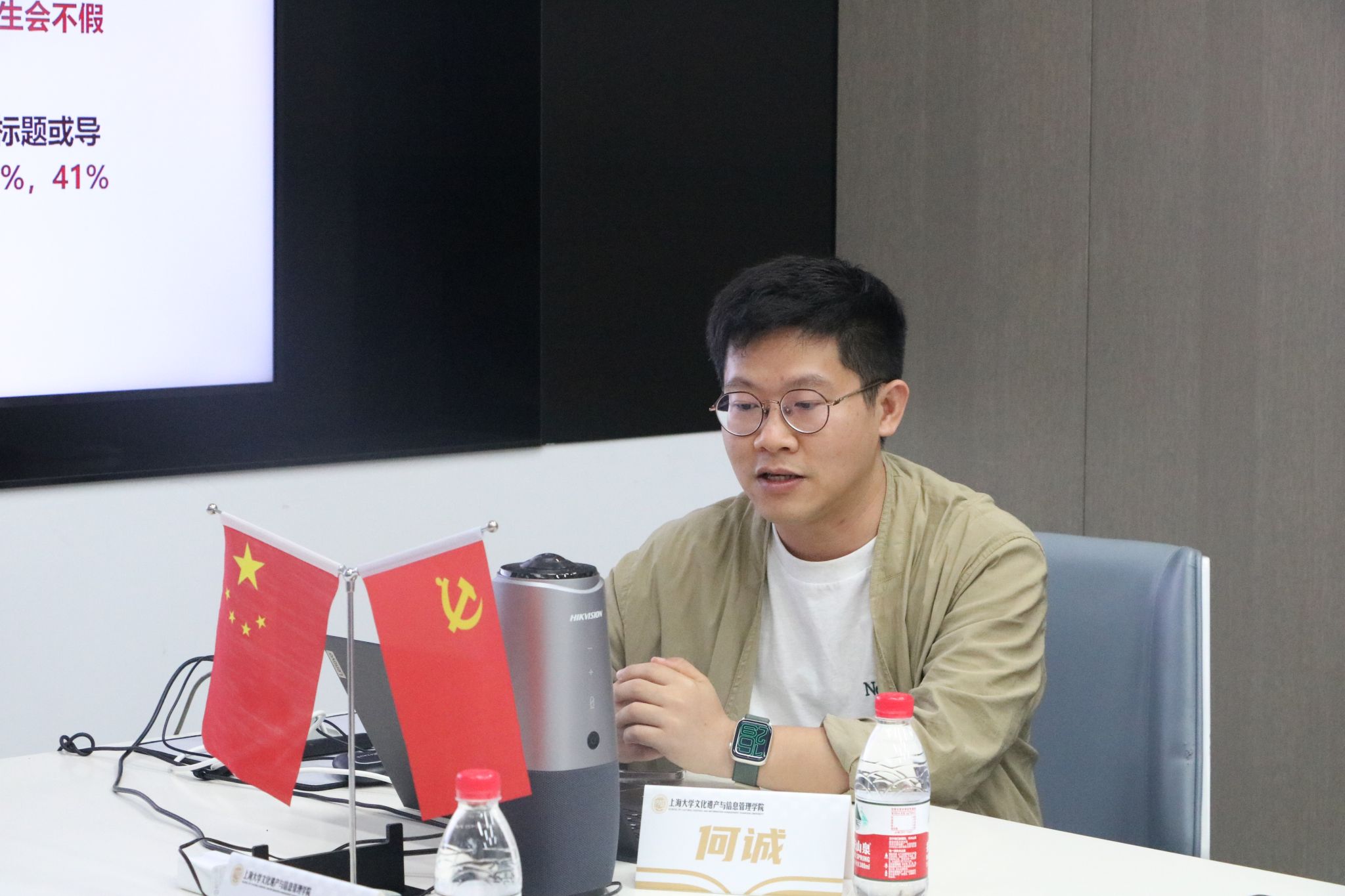 学院第三届融媒体中心主任苏垚作融媒体中心工作介绍。她提到,当前,学院宣传工作聚焦于会议活动、亮点宣传、信息服务,在组织架构与团队建设上,运营联络部、采编部和媒体技术部三个部门紧密结合,共同支撑起融媒体中心的主要事务。她介绍了当前的运营模式,主要包括平台搭建与资源整合、内容生产与传播、品牌建设与影响力提升三个方面。最后总结了融媒体中心的已有成果,并提出了目前存在的问题,希望融媒体中心的各位同学可以在现有的基础上继续努力,解决问题,将学院宣传工作建设的更好。