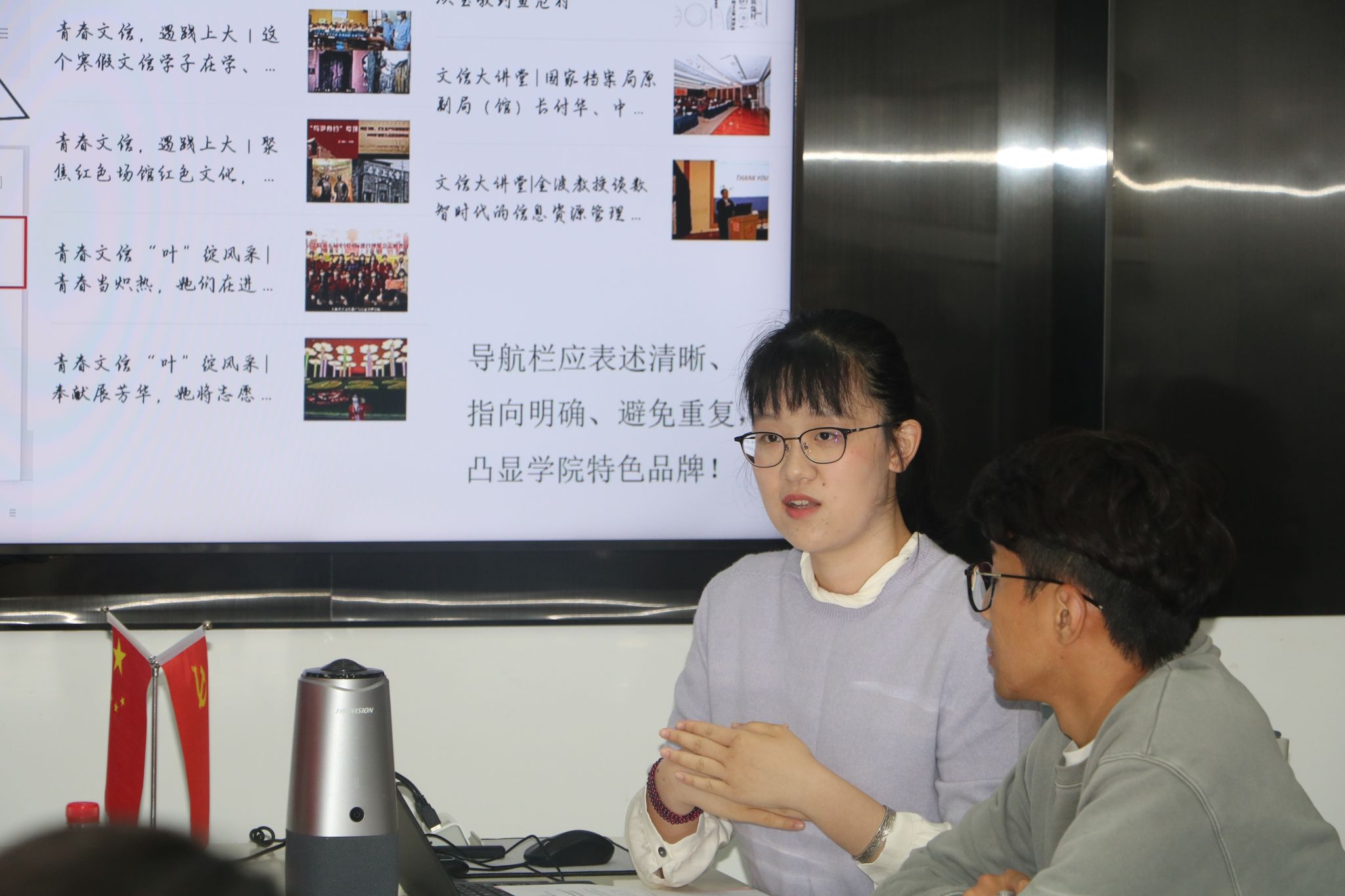 最后,学院党委副书记、副院长韦淑珍进行总结讲话。首先,她对融媒体中心自成立以来所取得的成就表示肯定,并勉励所有成员强化团队凝聚力,始终围绕营造积极向上、和谐健康的舆论氛围以及传播时代正能量的初衷不懈努力。她强调了新闻宣传工作的重要性和严谨性,希望同学们在宣传工作中不断提升自己的媒体素养与能力,以讲好文信故事、传播上大声音为己任,不断提高政治站位、坚守意识形态底线。最后她表示,期望学院宣传团队能够团结一致,携手共进,以文信学子的自觉性和责任感为动力,用心去感受和行动,共同书写学院宣传工作的新辉煌篇章。