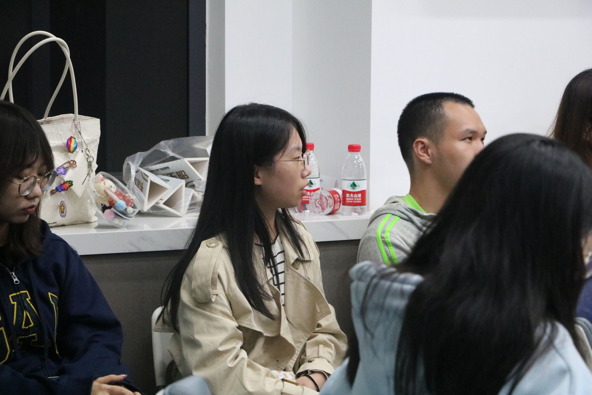 座谈交流环节,第三届融媒体中心媒体技术部屈云洋分享了他的工作心得。针对同学们的问题,学院党委副书记、副院长韦淑珍分享了她在新闻宣传工作中的突发经历和应对措施,与同学们交流了许多扎实的工作经验。师生共同沟通学习了新闻照片中的构图与取景技巧、如何将网络推送的政治严肃性和新媒体的“网感”相结合、公众号推文文末往期回顾的相关问题。