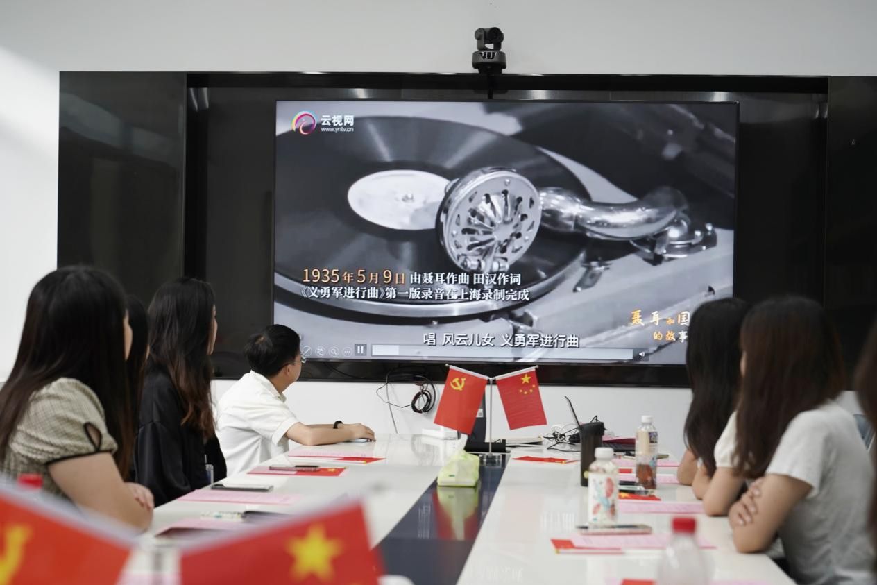 活动伊始,365英国上市网全体研究生党员齐声奏唱国歌,观看《聂耳和国歌的故事》短片,重温国歌由来。在雄壮激昂的旋律中,文信研究生党员不仅更加深刻地感受到了国歌《义勇军进行曲》背后承载的历史重量,更深刻体会到了它所蕴含的不屈不挠、奋发向上的民族精神。作为新时代的文化遗产保护者和信息管理者,文信学子有责任也有义务传承这份宝贵的精神财富,将其融入到日常的学习和工作中去。