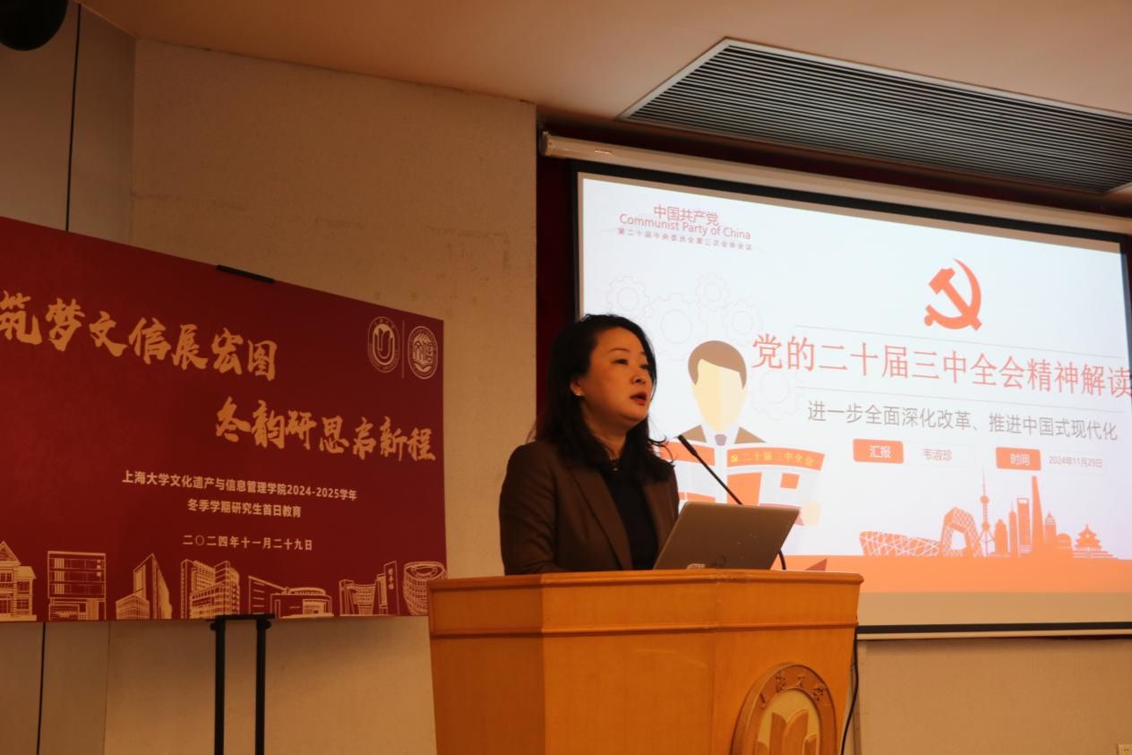 2024年11月29日,365英国上市网党委副书记、副院长韦淑珍为文信学院研究生讲授党课。首先,韦淑珍解读党的二十届三中全会精神,立足全会“进一步全面深化改革、推进中国式现代化”的主题,详细地介绍党的二十届三中全会基本概况,鼓励文信研究生深入学习贯彻全会精神,深刻领会和把握进一步全面深化改革的主题、重大原则、重大举措、根本保证,锐意进取、开拓创新,在新征程上谱写改革开放新篇章,推动中国式现代化建设披荆斩棘、一往无前。