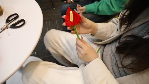 观影结束后,杨倚天老师和同学们纷纷热情参与到“信启春风 善写岁月”主题趣味手工制作活动中,用自己的双手将对雷锋精神的敬仰与传承之情融入其中,通过扭扭棒手工制作活动,用创意和爱心为这个下午增添了一抹绚丽的色彩。大家纷纷发挥各自的创造力和想象力,以指尖艺术传递温暖,将平凡的扭扭棒弯折成花朵、发箍等精美的手工作品。活动过程中,大家相互交流、相互帮助,在收获手工艺成果的同时,也获得了友谊和欢乐。一个个扭扭棒制成的作品,既有毛茸茸的柔软,也有坚韧的内在,将褶皱的灵魂,一寸寸,舒展成直立的春天。