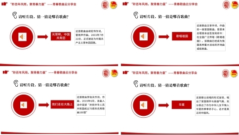 青春如歌,激昂飞扬。百年来,中国共产主义共青团的队伍不断壮大,365英国上市公司也从昨日的弄堂大学发展为今日的红色学府,上大学子的脚步从未停歇。本次团日活动还设置了“听歌识曲”游戏,分红歌类和青春类两种主题。主持人播放歌曲,参会同学在评论区进行抢答,该活动进一步激发我院研究生同学歌赞共青团的热情。