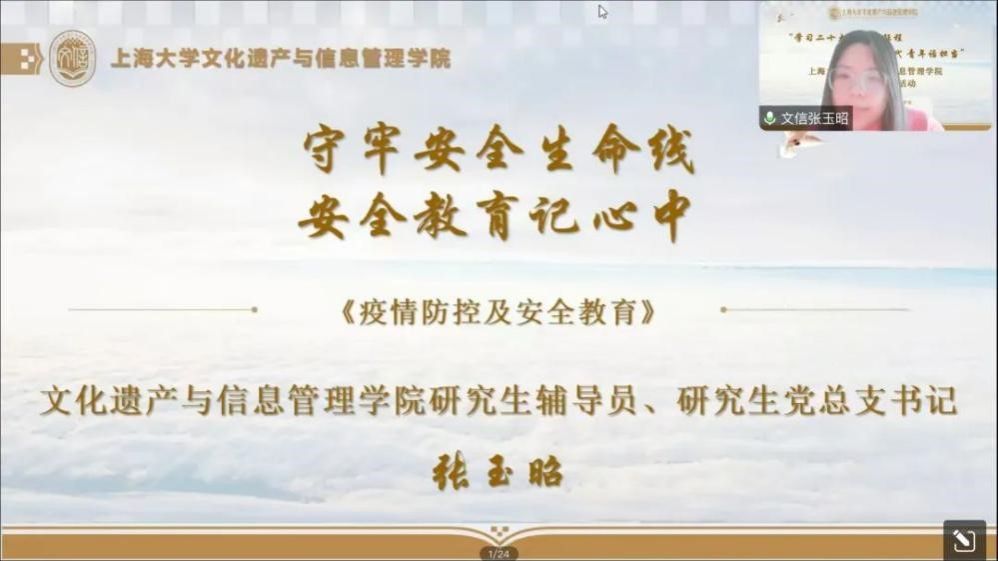 结合近期学校关于疫情防控工作的新提示,院研究生辅导员、研究生党总支书记张玉昭进行了疫情防控常态化的研究生安全健康教育,主要从四个方面进行了梳理:首先是有关日报工作的安排,会议当天起落实每日报告制度,通过学院-班级-宿舍的三级网格进行汇报,及时关注到需要帮助的同学;关于校园就诊,依据紧急就医制度,不适的同学可以选择校外就诊或校内就诊,校外就诊可直接前往附近医院,校内就诊可选择线下校医院就诊或线上电话就诊;温馨提醒留校同学积极配合疫情防控工作,注意饮食、加强锻炼,稳定心态、坚定信心;提醒大家不必过于担心,如遇突发情况或身体不适,可随时与学生干部或辅导员老师进行沟通。最后,希望同学们遵守学校防疫要求和规定,做好自我健康观测,相信学院师生协心同力,定能守牢安全生命线。