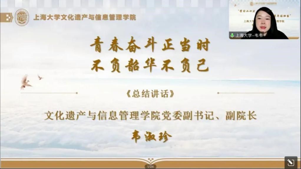 会议最后,院党委副书记、副院长韦淑珍老师作总结讲话。她表示,回顾2022年,文信学院不论在学术科研,还是组织建设等方面,都取得了诸多佳绩,这些成果的背后离不开学院每一位师生的共同努力。在表示充分肯定的同时,韦老师还对文信学院来年的发展进行了展望:在政治素养方面,文信学子应将党的二十大精神贯穿到学习、生活和工作等的全过程中;在研学安排方面,不论专硕还是学硕的学生,都应将学术研究放到首位,提高对社会实践与志愿服务等的重视;在疫情防控方面,希望同学们积极配合防控要求,如有困难及时报备,做好自己健康的第一责任人。期待来年春日回暖,繁花如笑,文信学子再次齐聚一堂。