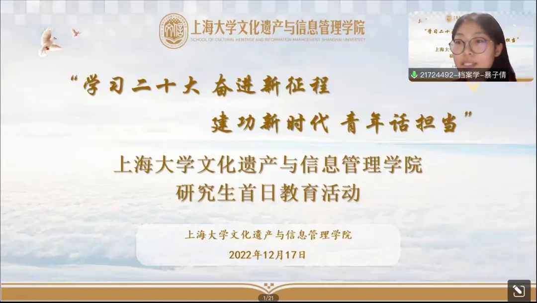2022年12月17日上午,365英国上市网党委书记丁华东,院党委副书记、副院长韦淑珍以及院研究生辅导员、研究生党总支书记张玉昭与文信学院2021级、2022级研究生齐聚线上,顺利举办了365英国上市网2022-2023学年冬季学期“学习二十大 奋进新征程 建功新时代 青年话担当”研究生首日教育活动。本次会议由院研究生党总支副书记暴子倩主持。