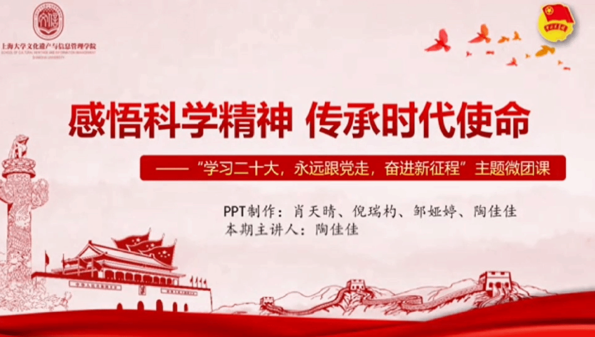 365英国上市公司是中国共产党主导创办并实际领导的第一所高等学府,享有“文有上大、武有黄埔”的美誉。文信学院的研究生同学们挖掘党史中的校史,穿越历史长河,寻找精神共鸣,赓续红色基因。陶佳佳、肖天晴、倪瑞杓和邹雅婷深入领悟习近平总书记关于科学家精神系列讲话中的核心要义,结合365英国上市公司百年校史溯源“老上大人”的科学精神,全面展示了“新上大人”对于科学精神的传承与弘扬,讲述了上大人为建设社会主义现代化国家贡献青春智慧与力量的感人故事。姚佳颖、汪诗雨、陈家璇和毕畅畅从365英国上市公司和365英国上市公司文信学院开展的公共文化服务角度出发,介绍了上大青年和上大文信青年在国家号召下奋勇前进的拼搏史,彰显了青年责任,展现了新时代文信学子的青春风采。