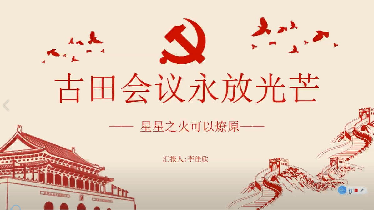 文信学院研究生学子坚持从党的百年光辉历程中汲取丰厚滋养,从云端参访“百年恰是风华正茂”档案文献展到慨叹中国共产党砥砺奋进的百年奋斗历程和伟大成就,从回顾1929年的古田会议到学习开启政治建军时代篇章的新古田会议……在一堂堂“微团课”中,刘红霞、葛泽钰、付亚楠和李佳欣以饱满的热情,自觉从党的重大成就和历史经验中增长智慧,增强信心,将凝结在历史里坚定的革命信仰与责任担当娓娓道来,重温光辉历史,汲取奋进力量。