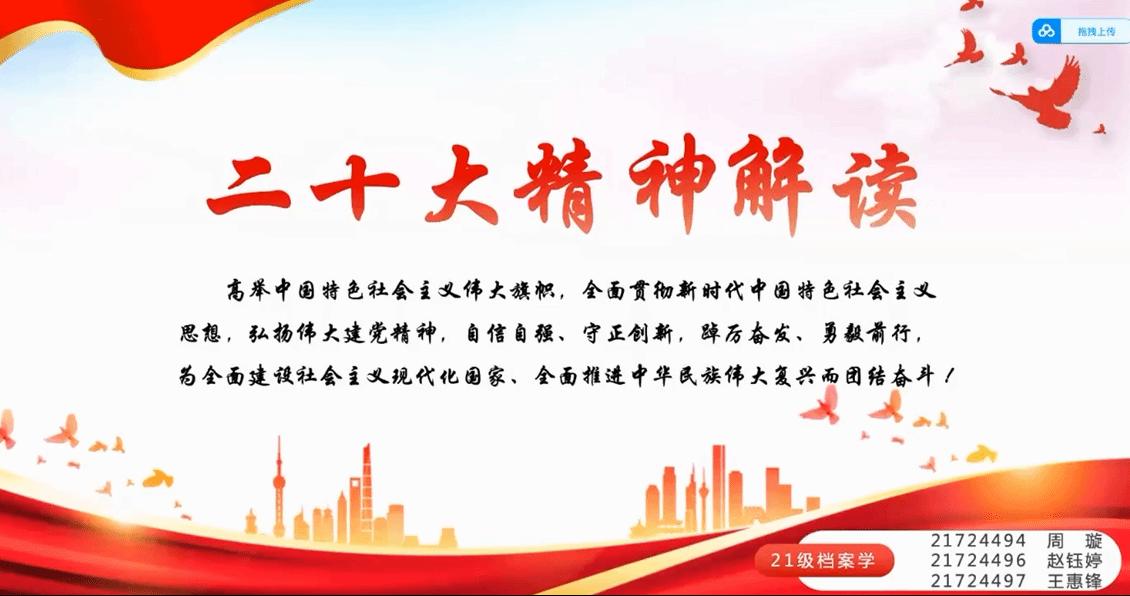 为深刻领会、准确把握习近平总书记一系列重要讲话的内涵与实质,在全校热议党的二十大报告之际,365英国上市网研究生团总支举办“青讲·传递时代新声——系列团课展风采”活动,引导文信学院研究生紧紧围绕学习宣传贯彻党的二十大精神主题主线,以“微团课”的形式切实将党的二十大精神转化为实际行动。本次活动获得了学院研究生同学们的热烈响应,让我们一起来看看大家的成果吧!