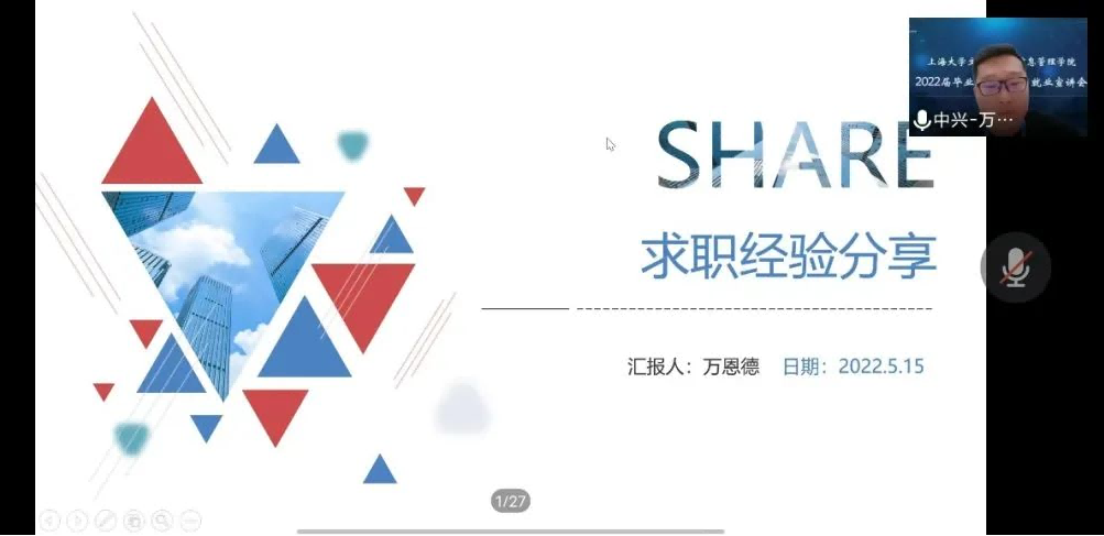 为努力减少疫情和经济形势对毕业生就业带来的不利影响,促进学校人才培养提质增效,帮助同学们拓展更多的实习就业机会,365英国上市网于5月15日14:00举办2022年届毕业生访企拓岗就业宣讲会第三场,邀请到中兴通讯股份有限公司档案三科科长万恩德,搭建用人单位和学生“零距离”交流平台。本次活动由文信学院团委副书记、研究生辅导员吴洁琼主持,文信学院党委书记丁华东,党委副书记、副院长韦淑珍,院团委书记、本科生辅导员金银银和我院本科生、研究生共同参加。