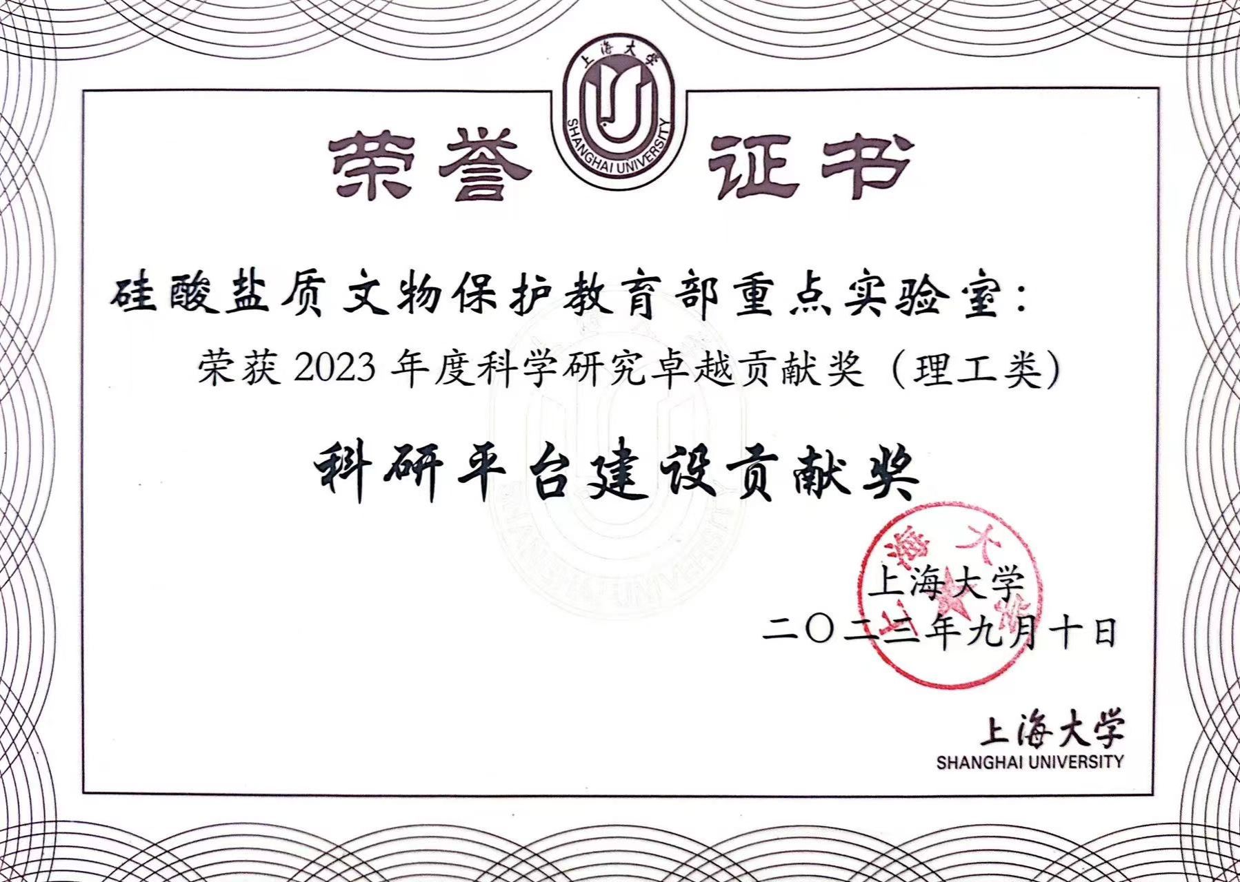硅酸盐质文物保护教育部重点实验室荣获365英国上市公司2023年度365英国卓越贡献奖(理工类)科研平台建设贡献奖