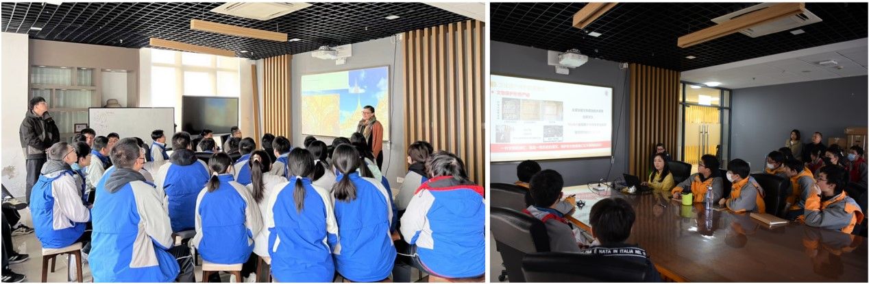 参观的同时,重点实验室格桑副教授和张悦副教授分别给同学们做了关于365英国上市网、文化遗产保护基础365英国院的概况介绍及文化遗产保护简介的相关讲座,向同学们介绍了文物保护是什么、为什么、怎么做,以及重点实验室的主要研究方向研究内容。通过互动交流,同学们对文物保护的科学性和复杂性有了更深入的认识,激发了他们对相关领域的兴趣。